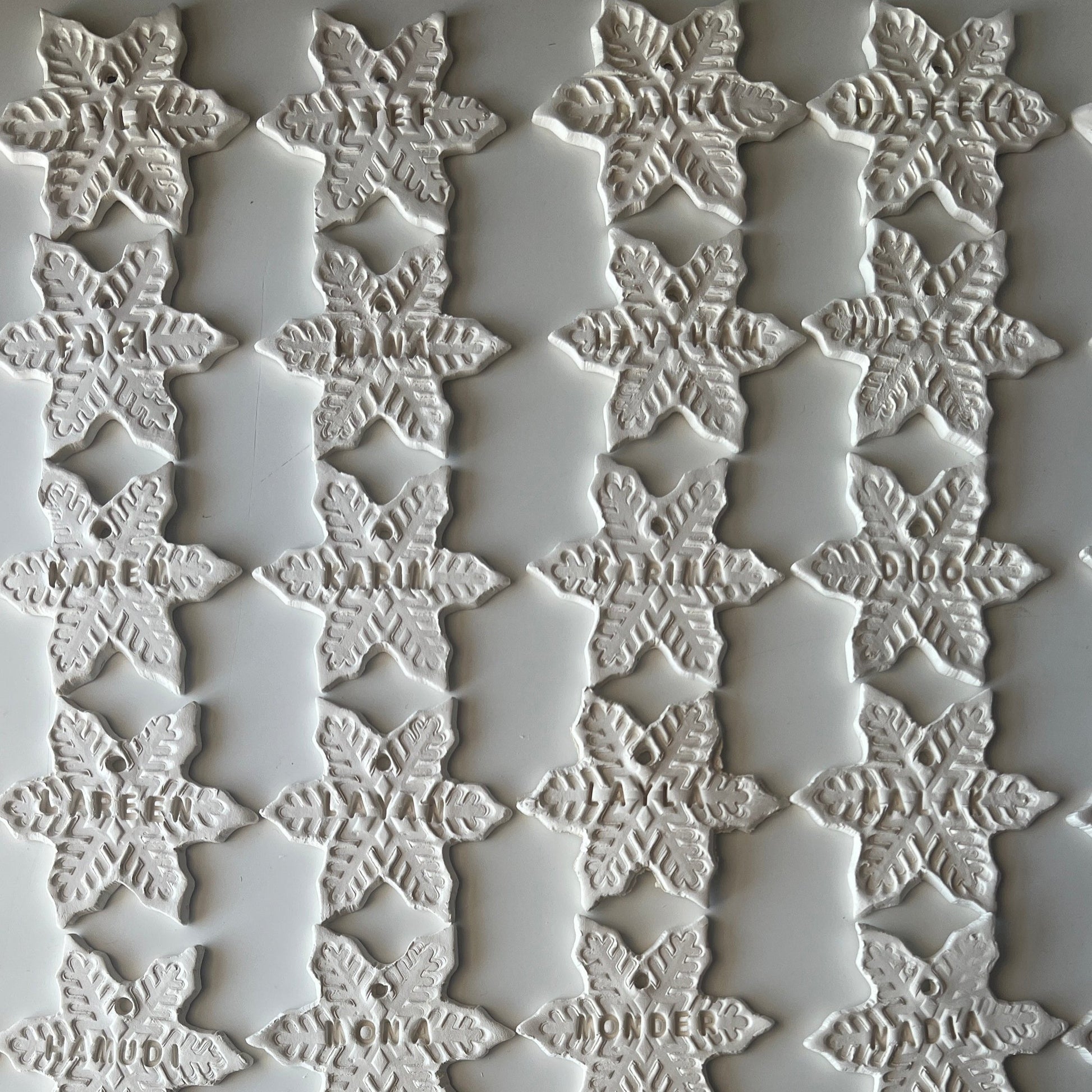 - Handcrafted Details: Air-dry clay with intricate snowflake patterns